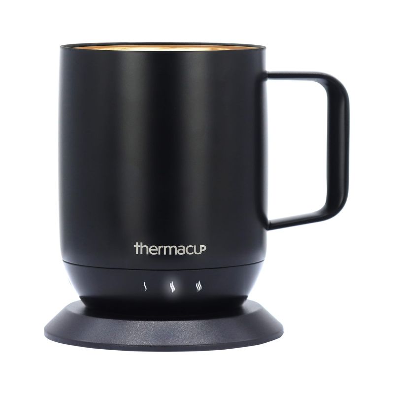 The Thermacup keeps beverages at optimal temperatures (140°-150°) with its adjustable settings and sliding lid to prevent spills. Its smart motion sensor and auto-off feature provide convenience without the need for apps. The long-lasting battery and LED display ensure easy usage. Hand wash only, do not use in a dishwasher. Includes a 1-year warranty, making it the perfect gift for hot beverage lovers.